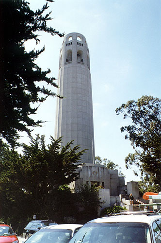 Coit Tower stands on the top of Telegraph Hill in Pioneer Park. The tower was built in 1933 to honour the volunteer firemen of the 1800's. It is 210 feet tall.